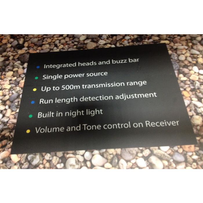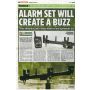 This revolutionary device comprises three integrated micro alarm heads and sensitivity selector buttons but uses one power source, a single radio transmitter all of which is contained in one buzz bar system.