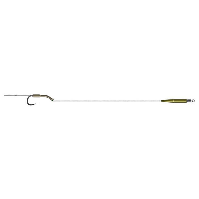 Ein Vorfach, das am besten in "normalen" Situationen oder beim Angeln mit Hindernissen funktioniert. Das Vorfach ist mittellang, mit einem Short Shank Aligner, gebunden an einen Dschungelhaken, und ist somit unsere erste Wahl, wenn wir an Gewässern auspacken, an denen Karpfen nicht so oft beangelt werden. Geknüpft mit unserem sehr flexiblen Chameleon, Wirbel (größe #8) und Tangeltube. Dadurch ist das Vorfach sehr geschmeidig und die Köderpräsentation sieht für Karpfen sehr natürlich aus. Der felsenfeste Jungle Haken mit dem Short Shank Aligner eignet sich auch perfekt zum Hindernisangeln. Dieser Haken hakt sich in harte Unterlippe, eine Stelle, an der man einen Karpfen ohne Verletzungen Drillen und von Hindernissen befreien kann!