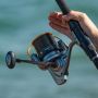 Diese Eigenschaften garantieren eine optimale Schnurverlegung über die Spule für extrem weite Würfe mit sowohl monofiler als auch geflochtener Schnur. Des Weiteren bietet die Rolle zwei Schnurclips und ist Salwasser resistent, um langfristig die Korrision zu verhindern. Ideal für Surfcasting sowohl bei feinem wie auch bei rauen Böden.