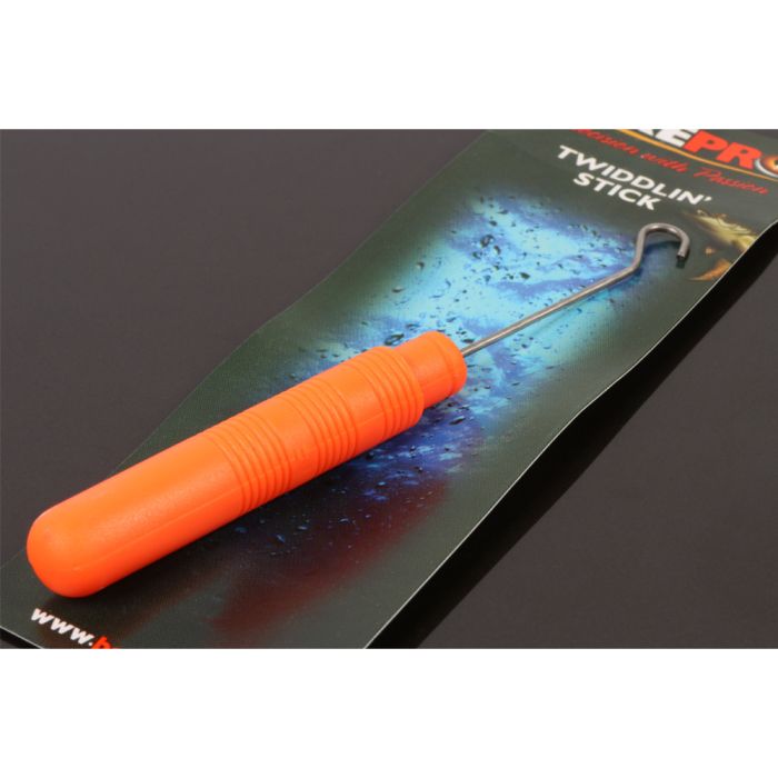 With its oversized handle and fine stainless steel crook this Twiddlin Stick has been designed to create perfect twisted joints on traces every time. Can be used with both swivels and hooks to create tight, even twists. Bright orange handle - no more losing tools in the grass!