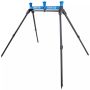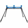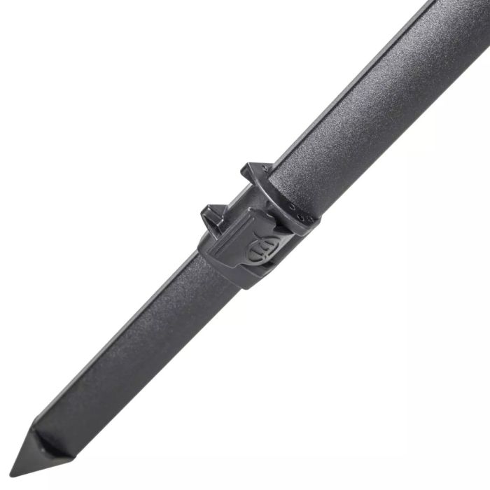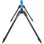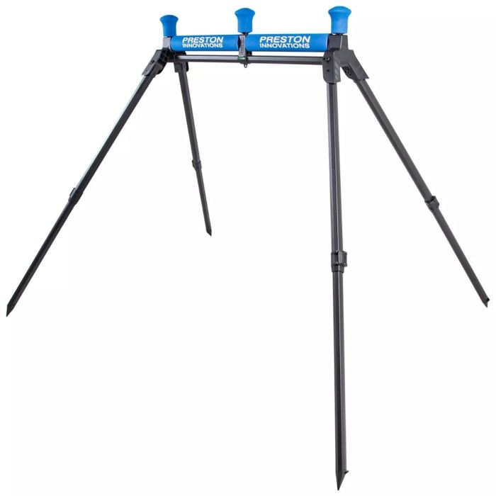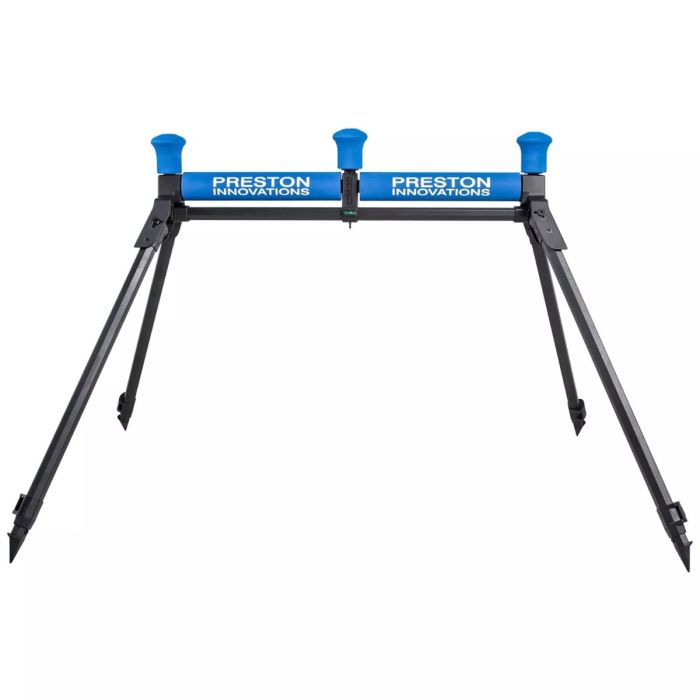 Die Ablagen verfügen über eine Wasserwaage für optimale Positionierung, wodurch verhindert wird, dass Rutenteile bei unebenen Ufern herunterrutschen. Ein Karabinerclip kann zum Anbringen von zusätzlichem Gewicht genutzt werden. Die hohen Beine sorgen für zusätzliche Höhe um Hindernissen am Ufer auszuweichen, während die Stabilität aufgrund der soliden Konstruktion erhöht wird.