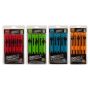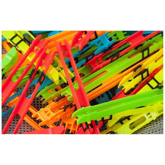 Neu und verbessert sind diese Double Winders jetzt mit zwei Schiebern ausgestattet, so dass zwei Rigs auf jedem Winder gelagert werden können. Es gibt einen Schlitz für Ihren Haken und einen Zapfen, der eine Schlaufe halten würde, was bedeutet, dass Rigs gebunden werden können und Vorfächer zu einem späteren Zeitpunkt hinzugefügt werden können, wenn erforderlich, ohne die Schnur zu verbiegen. Der Schieber kann über die gesamte Länge verschoben werden. An beiden Enden befindet sich ein kleiner Sicherungsstift, so dass es keine Rolle spielt, in welche Richtung Sie Ihr Vorfach aufwickeln. Der konisch zulaufende V-Hakenschlitz kann Haken bis zur Größe 26 aufnehmen, ohne die Winder zu beschädigen.