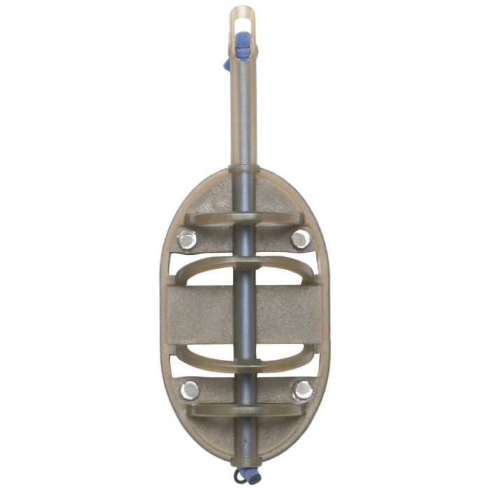 In Größe und Design sehr ähnlich wie der In-Line Flacher Method Feeder, jedoch mit Gummizug für ein stoßdämpfende Angelei. Das Design mit flachem Boden sorgt dafür, dass sie immer auf der richtigen Seite landen und der Köder oben auf dem Groundbait oder der geformten Pelletkugel liegt. Die hellbraune/transparente Farbe passt sich sowohl dem Grundfutter wie auch dem Boden an.