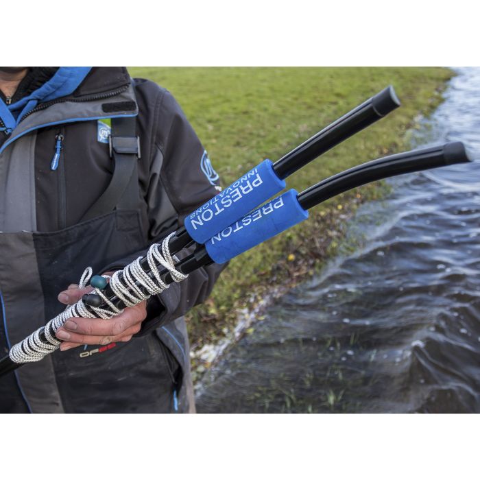 Markieren Sie verschiedene Abstände mit demselben Satz Stäbe. Wenn der Abstand, den Sie markieren müssen, geringer ist als ein voller Wickel, verwenden Sie die Farbmarkierungen, um bis zu zwei Bereiche zu markieren. Dann können Sie den Haken entweder in den Schaumstoff einhaken (ideal für Method Rigs) oder, wenn Sie einen Feeder verwenden, schieben Sie einfach den Feeder über einen der Stäbe.