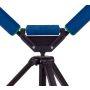 Das Dreibeinstativ wird sicher verriegelt und verfügt über ausziehbare Beinverlängerungen, die durch Schnellverschlüsse in der gewünschten Höhe fixiert werden. Die höhenverstellbare Mittelstange wird ebenfalls mit einem entsprechenden Rad fixiert.