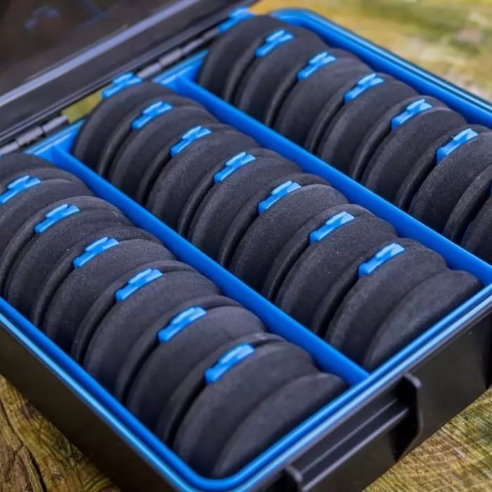 Das Revalution Lagersystem ist ein Spulen-Lager-System mit einem Unterschied - Sie können jetzt bis zu 21 Spulen und viele weitere Vorfächer pro Spule in dieser cleveren halbdurchsichtigen Box aufbewahren, damit Sie immer bereit sind zum Angeln.