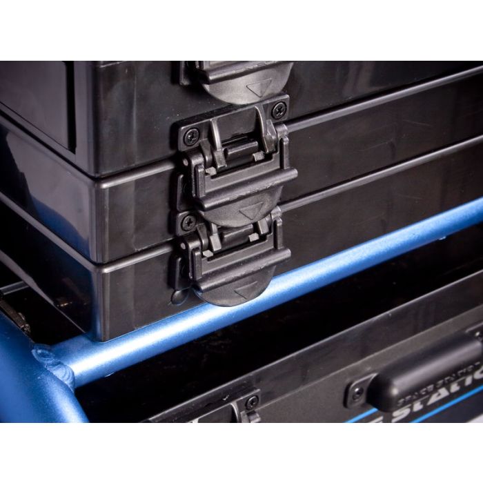The new Space Station XSII features a lower frame than the previous Space Station which allows more units to be added under the seat. This makes it more versatile. It comes with a two compartment tray fitted directly to the frame, a deep draw unit and a two compartment add on unit which can be used either attached to the deep base unit as part of a stacking system or fitted above the frame. The new style footplate offers increased grip thanks to a new covering finish and a more stable base. Continuing with the large footprint and large profile legs from previous Space Stations the XSII features non marking legs and cassette style slide out footplate. Comes supplied with full instructions and parts to convert the 2 compartment unit into a sliding unit which fits into the frame.