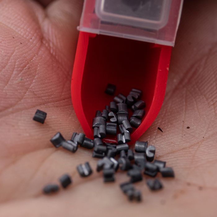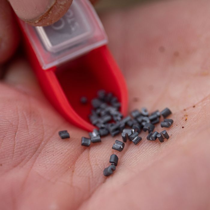 Stotz sind ein Hybridblei, der für den Gebrauch auf Schnüren mit größerem Durchmesser entwickelt wurde (sie funktionieren auch perfekt mit kleinern Durchmessern). Die breite Rille erleichtet die Platzierung auf der Schnur und die vergrößerte Oberfläche, hält die Schnur fest. Dies verhindert Beschädigungen und verhindert auch, dass das Schrotblei bei Druck abspringt. Die flachen Seiten der Stotz ergeben auch ein übersichtlichen Haufen, wenn sie zusammen gruppiert werden.