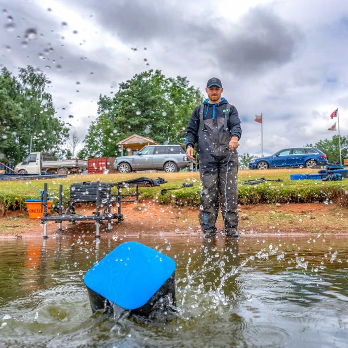 Ein Muss, bei hohen steilen Ufern. Kann verwendet werden, um Wasser zum Mischen von Grundködern und Pellets zu schöpfen, geliefert mit einer langen Schnur.
