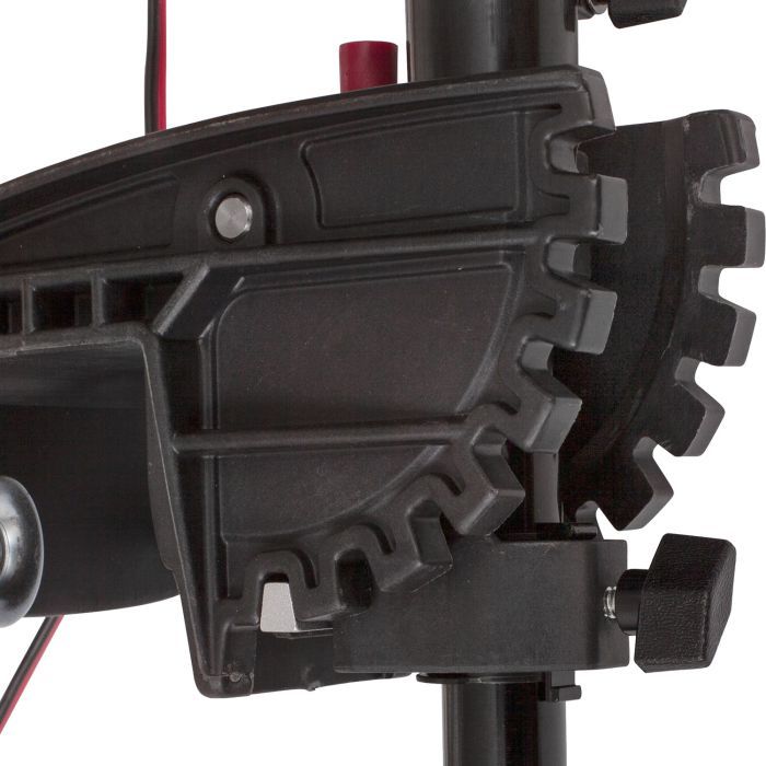 Er verfügt über einen Schalter für „vorwärts“, „aus“ sowie „rückwärts“. Dazu kann zwischen zwei Geschwindigkeitsstufen gewählt werden. Die Eintauchtiefe des Propellers ins Wasser sowie der Lenkdruck sind über Rändelschrauben stufenlos einstellbar. Das Ruder kann zum Transport platzsparend im Motorkopf versenkt werden. Und schließlich ist der Schaft mit einem Patentverschluss versehen, damit der Motor hochklappt - sollte er gegen ein Hindernis kommen.