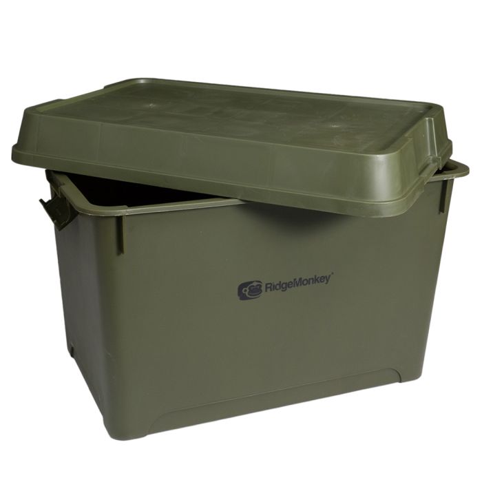 Der Deckel der Ridgemonkey Kisten in den Größen 36L und 66L ist austauschbar, und die Deckel werden durch Seitenclips gesichert, die die Kisten luftdicht machen. Ideal für die Aufbewahrung von Boilies oder sonstigen Ködern, die noch zur Hälfte voll sind.