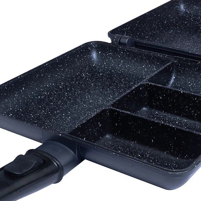 Mit einem einzigartigen abnehmbaren Scharniersystem, das eine Pfanne in zwei verwandelt, abnehmbaren Cool-Touch-Griffen fr eine einfache Aufbewahrung und einer unbertroffenen Antihaftbeschichtung.