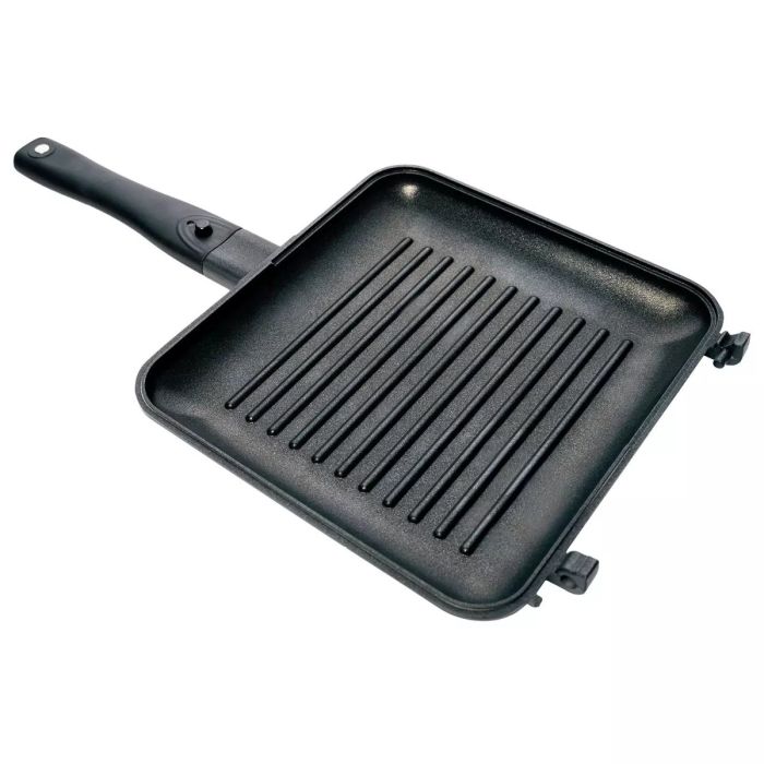 Die marktführende Fluorpolymer-Beschichtung beim RidgeMonkey Connect Pfannen- und Griddle-Set bietet einzigartige Antihaftwirkung. Die quadratische Form ermöglicht eine platzsparende Zubereitung und die abnehmbaren Griffe eine platzsparende Aufbewahrung. Durch das innovative, Klappdesign mit lösbarem Scharnier dient die Grillplatte gleichzeitig als Deckel für die tiefe Pfanne oder beide Pfannen können unabhängig voneinander verwendet werden - Sie haben die Wahl!
