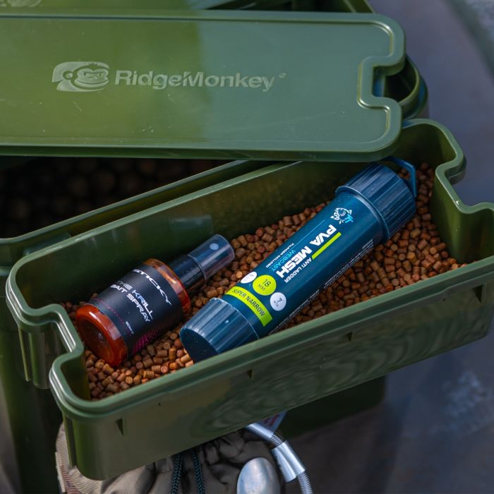 Zusätzliche Einsätze/Staufächer für das Eimer-System von RidgeMonkey, sind stapelbar, komplett frostsicher und mit dem dichtschließenden Deckel können sie auch als eigenständige Boxen benutzt werden – perfekt für eine Menge Aufbewahrungsmöglichkeiten. Die Einsätze können auch an der Seite im "Köder-Kellner-Stil" angebracht werden, aber sie passen auch gut oben in den Eimer, wenn sie nicht gebraucht werden.