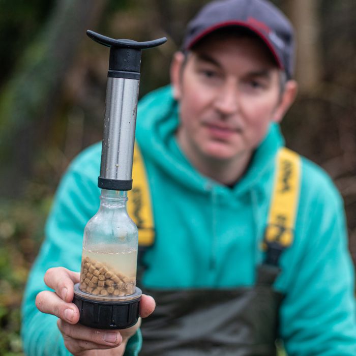 Die ursprüngliche Idee der Pelletpumpe von Ringers wurde unten am Ufer erfunden, wo Phil Ringer selbst feststellte, dass alle auf dem Markt erhältlichen Standard-Pelletpumpen einfach nicht den Zweck erfüllten. Als großer Fan des Einsatzes sinkender Köder beim eigenen Fischen inspirierte ihn dies sofort zu diesem hervorragenden Werkzeug.