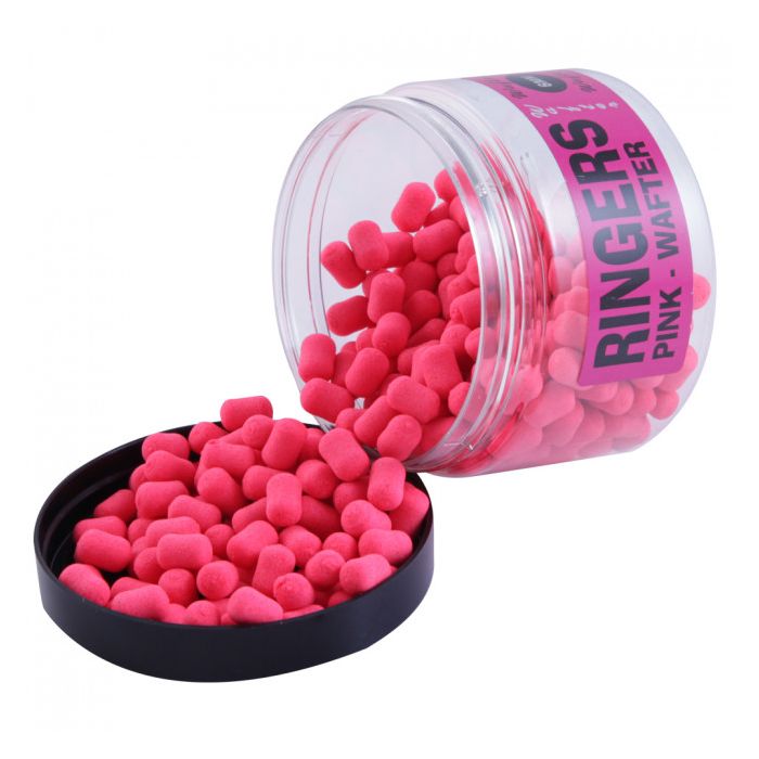 Diese Ringers Pink Wafter gibt es in 6 mm Größe, sind also relativ klein im Vergleich zu anderen Pop-up-Ködern auf dem Markt. Sie sind vollgepackt mit natürlichen Ölen und Aromen, was sie unglaublich attraktiv für vorbeiziehende Karpfen macht.
