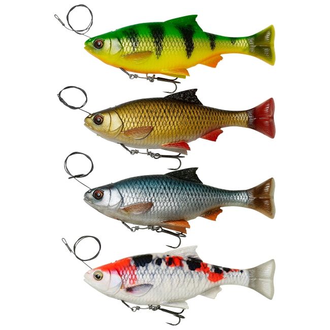 Aus erfahrung von der 3D Serie erinnert dieser Rotaugen Satz an einen echten Rotauge mit perfekten Details, Photochrome Hautdruck und DNA Aroma! Der Pulse im Schwanz lässt den Köder verführerisch wackeln und die Rassel im schickt provozierende Klick-Geräusche aus. Das brillante Line Thru-Design, ist mit dem Line Thru Modifier aufgeriggt und erlaubt schnelle Vorfachwechsel. Im Drill rutscht der Line Thru Rotauge auf dem Vorfach hoch, weg von den zerstörerischen Zähnen, und der Fisch kann das Gewicht des großen Köders nicht nutzen, um den Haken abzuschütteln.
