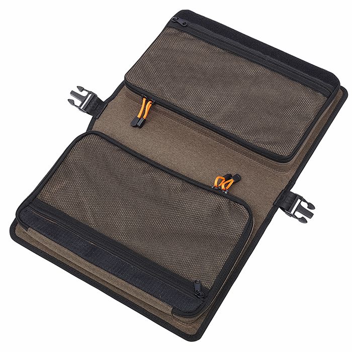 Bleiben Sie vielseitig mit dieser praktischen, doppelseitigen Vorfachtasche. Sie bietet auf der einen Seite eine Köderbox für Köder und Jigköpfe und auf der anderen Seite 12 strapazierfähige PE-Taschen für Zubehör. Zwei seitliche Netztaschen bieten zusätzlichen Platz für Zubehör.