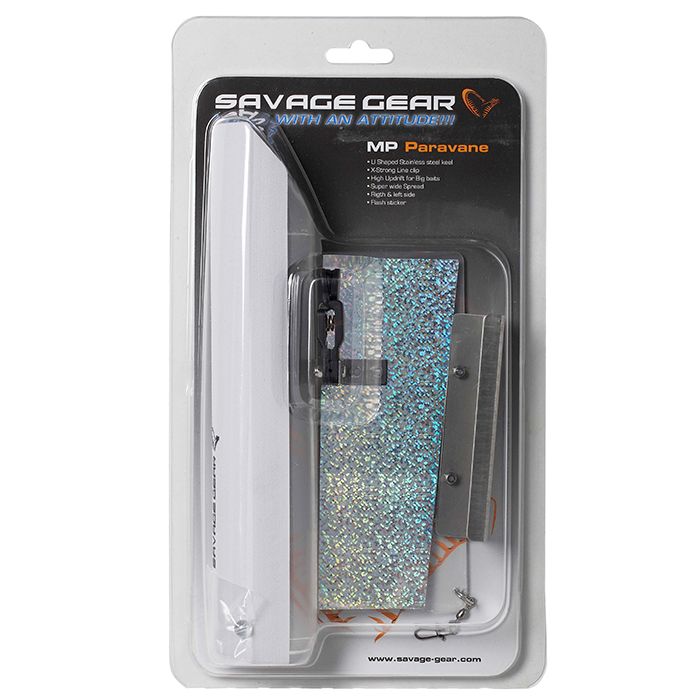 Mehrzweck-Paravane, mit u-förmigem Kiel aus rostfreiem Stahl mit hervorragendem seitlichen Lauf. Den MP Paravane gibt es als rechts- und links Modell, mit Schnurclip, der sich bei Nichtgebrauch einfach zusammenklappen lässt. Entwickelt für das Schleppangeln mit Ködern und lebendigen Ködern bei Geschwindigkeiten zwischen 0,5 und 4 Knoten.