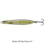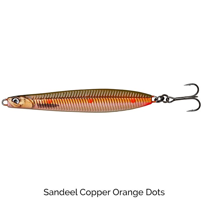 Meerforellen reagieren sehr stark und aggressiv auf die UV-roten und orangefarbenen Punkte. Zusammen mit dem Kupferblitz ist alles fein abgestimmt,