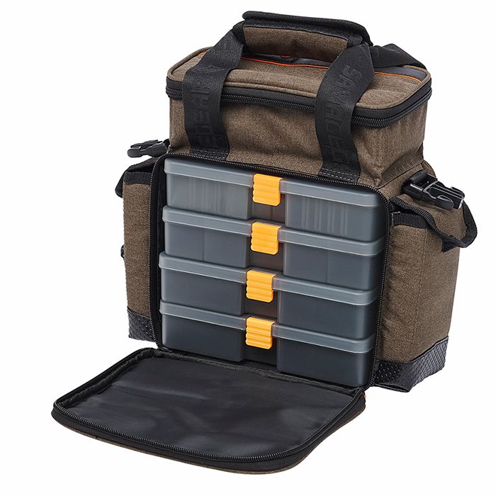 Spezialisierte Ködertasche Mit dieser praktischen, standfesten Ködertasche haben Sie Ihre gesamte Angelausrüstung immer griffbereit, wo immer Sie auch hingehen. Sie verfügt über ein Frontfach mit vier Köderboxen im Inneren und zwei Seitentaschen, die jeweils eine weitere Box enthalten. Ein Fach oben für Zubehör sorgt dafür, dass Sie nie etwas zurücklassen müssen. Größe S: 8 L, 1x 4A, 1x 4B und 2x 4C Boxen im Hauptfach, 2A und 2B Boxen in den Seitentaschen. Größe M: 18 L, 2x 5A, 2x 5B Boxen im Hauptfach, 4A und 4B Boxen in den Seitentaschen. Größe L: 31 L, 2x 6B, 1x 6D, 1x 6B tiefe Boxen im Hauptfach, 4A und 4B Boxen in den Seitentaschen.