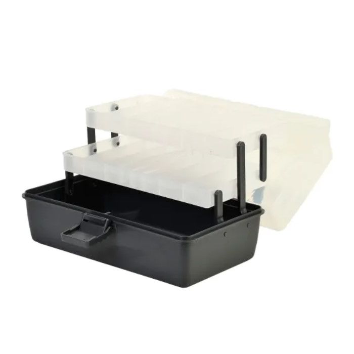 Diese freitragenden Angelkisten werden mit einem durchsichtigen Deckel und einem schwarzen oder blauen Boden geliefert. Beide haben teilkonfigurierbare Fächer und einen robusten Tragegriff.