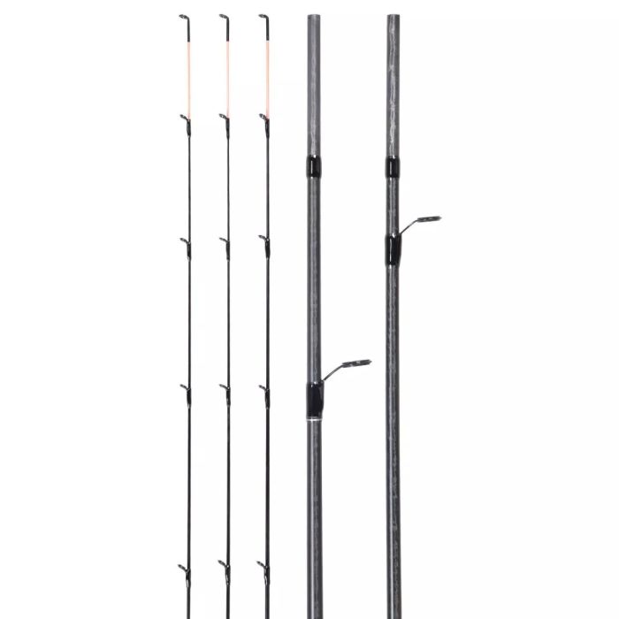 Die Speedmaster ist in einer Länge von 274 bis zu 335 cm erhältlich, die je nach Ihren Angelbedingungen erweitert werden kann. In dieser Länge hat die Rute ein Wurfgewicht von max. 70 Gramm. Sie können Ihre Feederrute mit den mitgelieferten 0,5oz, 1oz und 2oz Carbonspitzen weiter modifizieren.