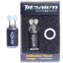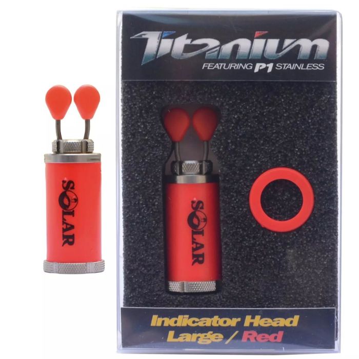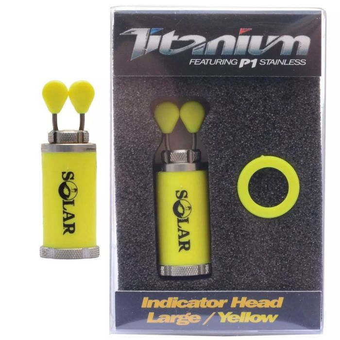 Die Solar-Anzeigeköpfe sind in zwei Größen erhältlich, klein und groß, und werden in sieben Farben angeboten: weiß, grün, gelb, Nite-Glo, blau, rot und carbon. Sie verfügen über einen Isotopenschlitz, 25 mm x 3 mm beim größeren Kopf und 15 mm x 3 mm beim kleineren Modell. Als nettes zusätzliches Extra wird der Indikator mit einem farbcodierten Kunststoffring geliefert, der unter Ihrer Rückenlehne oder Ihrem Alarm befestigt werden kann, um Ihren Rod Pod oder einzelne Ruten farblich abzustimmen.