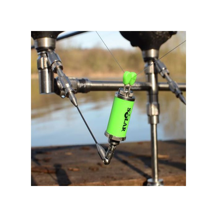 Die Anzeiger sind mit allen Solarketten, Bügel und Buzz-Bar-Zubehörteilen kompatibel und besitzen einen einfach einstellbaren Schnurclip. Der rostfreie Stellring unten am Indikator-Kopf kann verstellt werden und passt die Spannung entsprechend an, damit Sie Ihre Einstellung ändern und die Reaktionsfähigkeit des Indikatorkopfes entsprechend abstimmen können. Dies ist perfekt, wenn Sie dicht neben Unkraut angeln und Ihren Indikatorkopf nahe an Ihrem Bissanzeiger positionieren müssen, um sicherzustellen, dass Sie dem Fisch nicht zu viel Schnur geben.