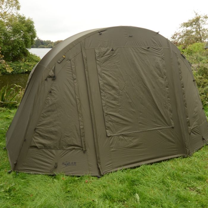 Das Solar SP 747 Jumbo 2-Mann-Bivvy ist ein Zuhause für die Karpfenjagd am Ufer.