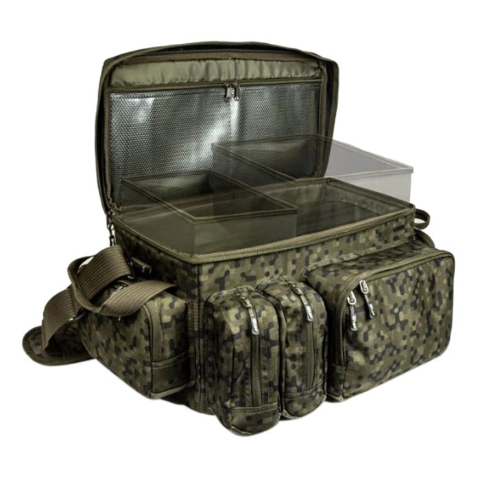 Very versatile Barrow Bag with a multitude of side pockets to store all kinds of materials. Very large main compartment with Vertabr8 rigid construction, which prevents the bag from collapsing. Also equipped with removable internal dividers so you can store your materials in a very organized manner. Equipped with removable, self-ventilating AirStrap and made in Solar's unique SolarCam camo pattern. Made from Solar's exclusive and “Industry First” G-Tex material. G-Tex is made from recycled bottles & packaging, produced with low carbon emissions, creating an incredibly strong and durable product. G-Tex is certified* to minimize the impact on the environment and your equipment.