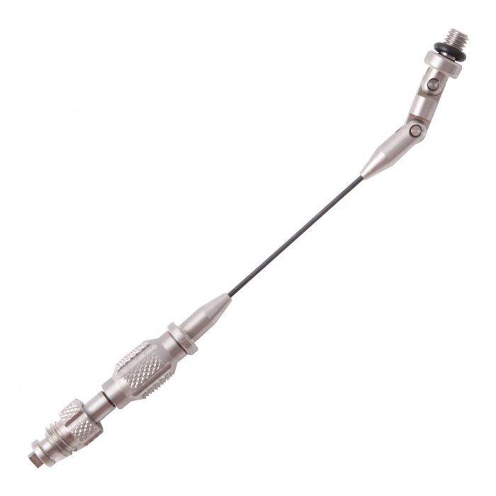 Der Multifunktionsarm aus Titan umfasst einen oberen Drehpunkt, der mit dem gerändelten Diamantkragen in einer Schwenkarm- oder einer geraden Armposition arretiert werden kann. Der Titandraht, ursprünglich für die Luftfahrt entwickelt, ist extrem flexibel und langlebig.