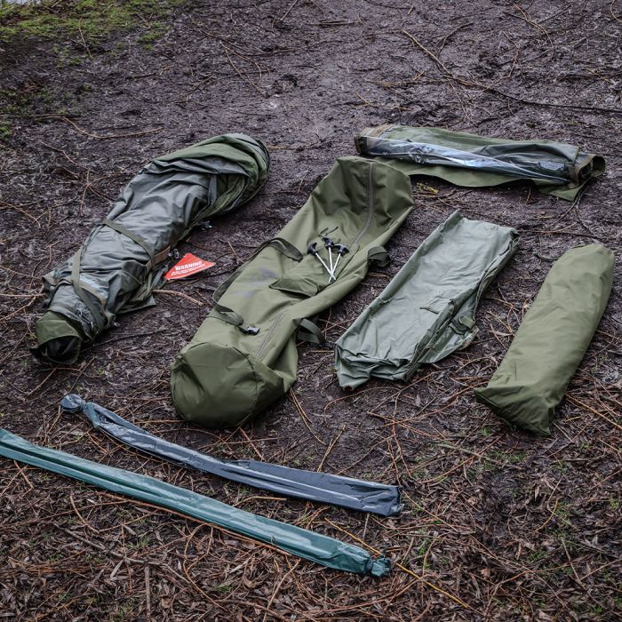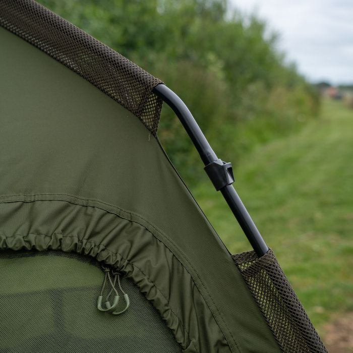 Ein großer Bonus für Reisen ins Ausland ist die Möglichkeit, eine robuste Bodenplane mit 'Einrasten' oder 'Einzippen' hinzuzufügen, die auch eine 'klappbare Eingangs-Klappe' bietet, um den Eingangsbereich einfach trocken und sauber zu halten. Das Bivvy verfügt außerdem über ein abnehmbares Frontpaneel mit Moskitoseitenfenstern und vollständig anpassbarem Fronttürsystem. Weitere Vorteile sind interne Taschen vorne und hinten, grün/klare Türpaneeloptionen sowie dreifach einstellbare Belüftungsklappen hinten, die von innen im Bivvy geöffnet werden können. Integrierte Watershed™-Belüftungsabstandhalter, eine übergroße Kompressions-Tragetasche, zwei 48" Schnellverbindungsstormpoles und robuste T-Heringe runden das Paket ab.