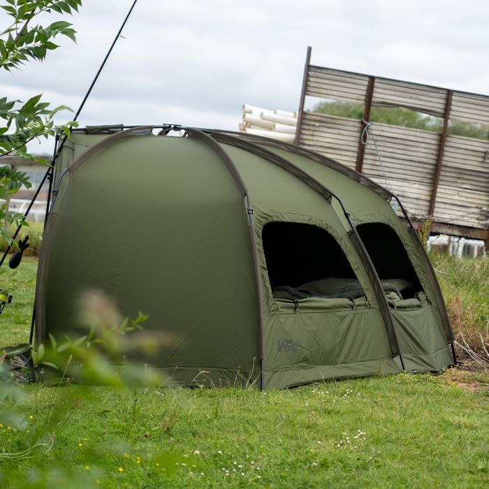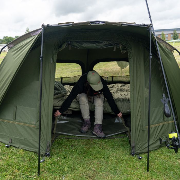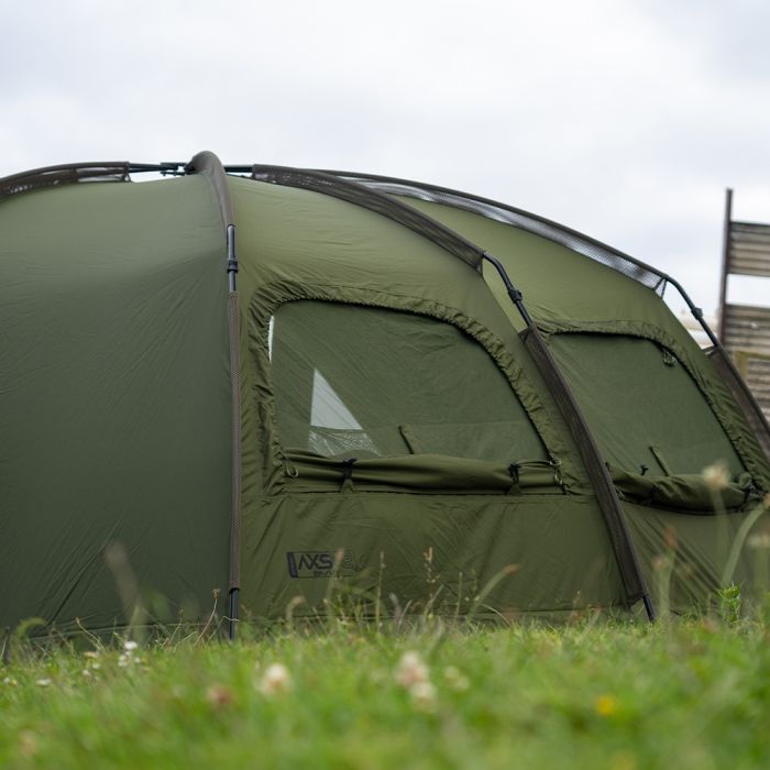 Nach dem Erfolg des AXS Bivvy wurde das AXS-V2 Bivvy entwickelt, basierend auf dem äußerst robusten AXS ALLOY-Zentralnabenpunkt und dem leichten, verdrehsicheren 6061 Aluminiumgestell, das eine ultraschnelle und besonders stabile Aufstellung ermöglicht. Das Material wurde durch unser neues Cloudbase+™-Gewebe mit 16.000 mm Wassersäule aufgerüstet, das robust, leicht und äußerst wasserdicht ist. Das Gestell ist so geformt, dass es maximalen Innenraum bietet, mit steilen und hohen Seiten, ideal für längere Sessions in Großbritannien oder Europa. Das übergroße Frontverdeck mit Regenablaufschutz bietet zusätzlichen Schutz und ist perfekt, um Ihre Liege und Ausrüstung vor den Elementen zu schützen. Ein großer Bonus für Reisen ins Ausland ist die Möglichkeit, eine robuste Bodenplane mit 'Einrasten' oder 'Einzippen' hinzuzufügen, die auch eine 'klappbare Eingangs-Klappe' bietet, um den Eingangsbereich einfach trocken und sauber zu halten. Das Bivvy verfügt außerdem über ein abnehmbares Frontpaneel mit Moskitoseitenfenstern und vollständig anpassbarem Fronttürsystem. Weitere Vorteile sind interne Taschen vorne und hinten, grün/klare Türpaneeloptionen sowie dreifach einstellbare Belüftungsklappen hinten, die von innen im Bivvy geöffnet werden können. Integrierte Watershed™-Belüftungsabstandhalter, eine übergroße Kompressions-Tragetasche, zwei 48" Schnellverbindungsstormpoles und robuste T-Heringe runden das Paket ab. *AXS-V2 Vapour Cap und AXS-V2 Wrap sind separat erhältlich.