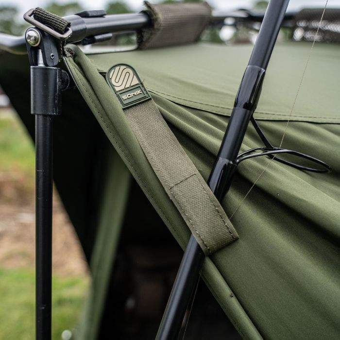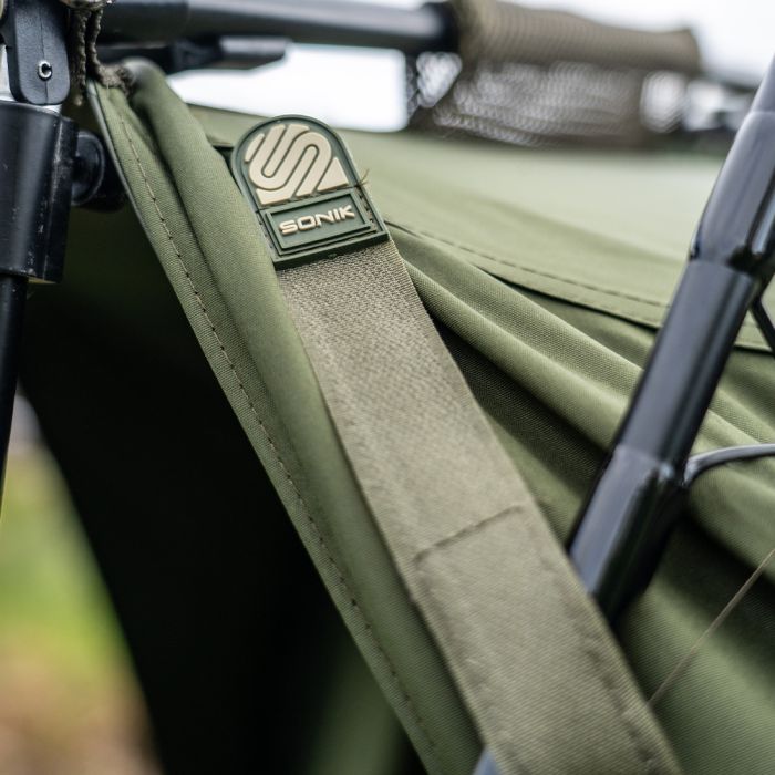 Nach dem Erfolg des Sonik AXS Bivvy wurde das AXS-V2 Bivvy entwickelt, basierend auf dem äußerst robusten Sonik AXS ALLOY-Zentralnabenpunkt und dem leichten, verdrehsicheren 6061 Aluminiumgestell, das eine ultraschnelle und besonders stabile Aufstellung ermöglicht.