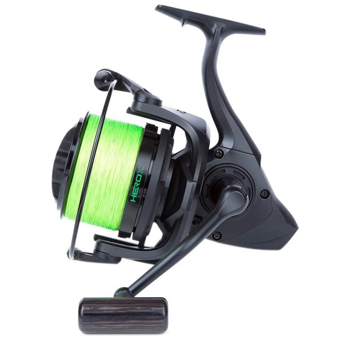 HEROX ist eine stilvolle, robuste Rolle mit großer Kapazität, die für Karpfen- und Specimen-Angler entwickelt wurde, um allen Bedingungen gerecht zu werden. Hergestellt nach hohen Qualitätsstandards und mit einem weichen Wormshaft-Getriebe ausgestattet. Unser Heli Coil-Getriebe bietet eine perfekte Schnurverlegung für eine reibungslose Wurfleistung. Hergestellt aus leichtem Graphit; der Körper und der Rotor verfügen über einen schwebenden Rotor-Schnurschutz, der hilft, Verwicklungen zu vermeiden. Die elegante, matte schwarze Oberfläche, der schwarze CNC-eloxierte Aluminiumgriff mit dunkler Holzoptik strahlt Qualität aus. Die Spule ist mit zwei hochbelastbaren, E-Z-Entry-Federklemm-Schnurclips ausgestattet, die die Genauigkeit beim Weitwurf verbessern. Weitere Merkmale sind 5 + 1 Kugellager sowie ein Übersetzungsverhältnis von 4,6:1. Darüber hinaus unterstützt das ultraglatte Quick-Torque-Bremssystem die Kontrolle beim Drill großer Fische.