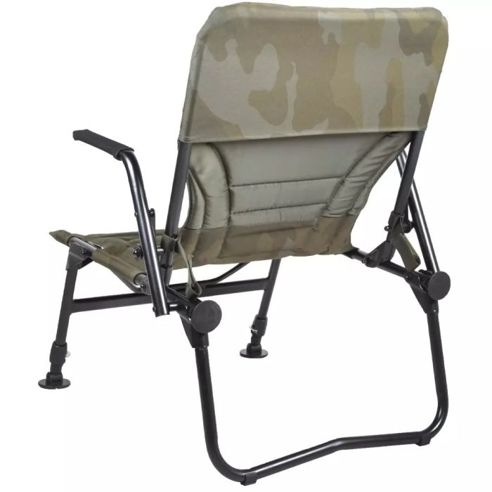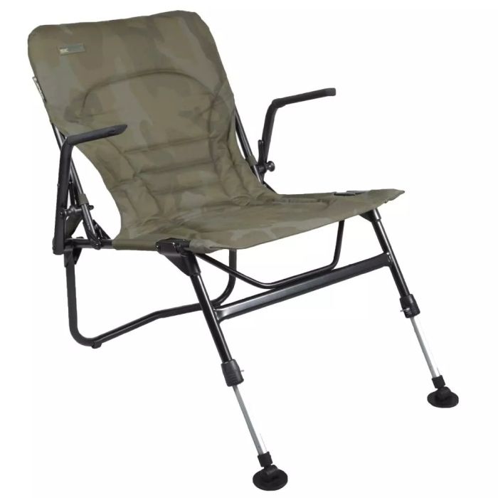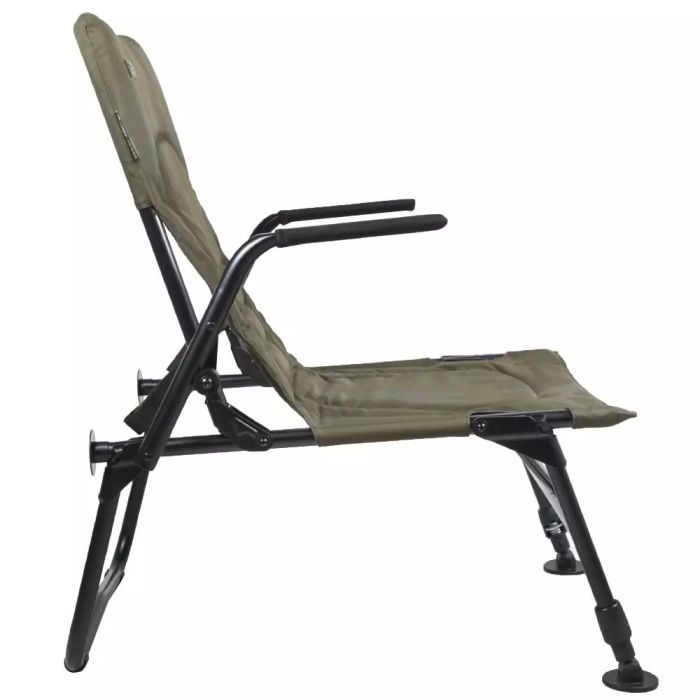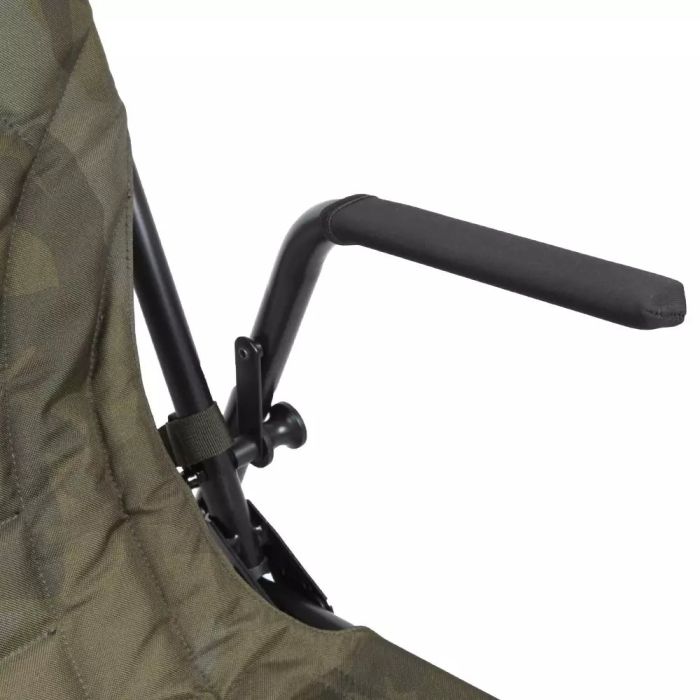 Mit einem leichten Aluminiumrahmen und einer ultra-bequemen Polstermatratze ist dieser kompakte, tragbare Angelsessel die perfekte Wahl, egal ob Sie lange Angeln gehen oder nur ein paar Stunden nach der Arbeit einsteigen wollen. Gepolsterte Neopren-Armlehnen machen ihn bequem, während er sich mit eingeklappten Beinen an der Seite eines Bedchair/Liege befestigen lässt, was ideal ist, wenn Sie jemand zur Gesellschaft mitnehmen.