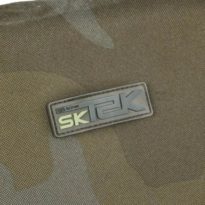 Der SK-TEK-Stuhl ist mit strapazierfähigem 600D-PVC unterfüttert und mit SK-TEK-Tarnstoff bezogen, um einen subtil stilvollen Look zu erzielen. Der SK-TEK-Stuhl verfügt über längenverstellbare Vorderbeine mit großen drehbaren Schlammfüßen und Gurte mit Klettverschluss, die die Beine beim tragen stützen. Mit einem Gewicht von nur 3,5 kg ist dieser Stuhl die ideale Option für Kurzzeitangler, die sich die Mühe ersparen wollen, eine Karre über matschigen, durchlöcherten Boden zu schieben. Mobile Angler werden den leichten kompakten tragbaren Stuhl lieben, während Angler mit längeren Aufenthalten den Komfort, zu schätzen wissen.