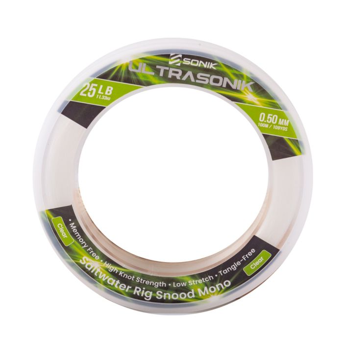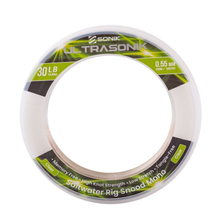 Das Ultrasonik Snood-Mono, Vorfach/Seitenarm-Material wurde als Ergänzung zur Ultrasonik Salzwasser-Monofilschnur entwickelt und bietet eine verdrehsichere Verbindung für die so wichtigen Präsentationen mit verschiedenen Vorfächern.