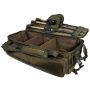 Sonik are introducing the ultimate 3-rod transport system. Sized to fit three retractable butt carp rods with 44 or 50 pack down lengths. Thanks to the intelligent adaptable design the system will accept rods with different handle lengths. Placing rods on the inner fold out lid allows you quick access to your tackle in the three removable pouches that are perfectly stored under your bedchair. The Transport system will also fold for easy storage and is made from our ultra tough PVC backed 600D Bank-Tek camo material with a heavy-duty waterproof base material. There are also two top compression straps for extra accessories and the carry straps can double as a rucksack harness.