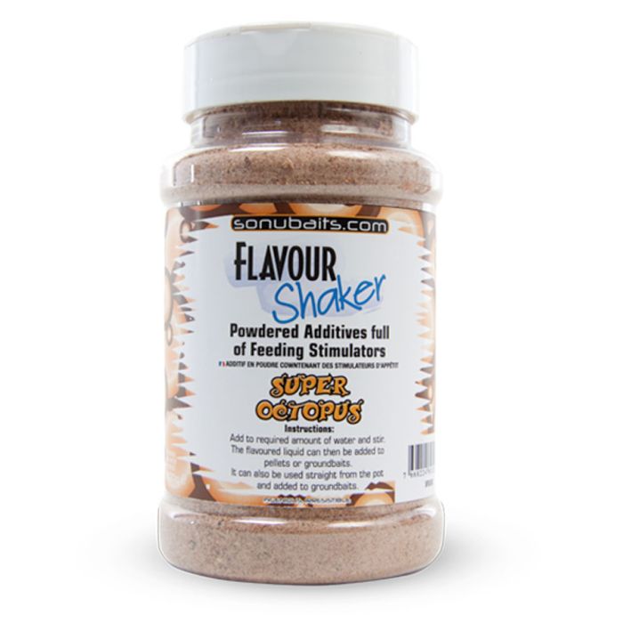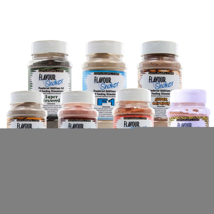 Flavour Shakers are some of the best flavours and ingredients available including: F1 , Tiger Fish, Salted Nut Crush, Spicy Sausage, Super Fish, Super Krill, Super Octopus, Super Seaweed