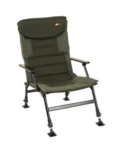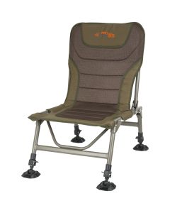Stellen Sie zunächst sicher, dass Ihr Stuhl individuell angepasst werden kann. Ähnlich wie bei einer Sitzbox haben viele unserer Angelstühle verlängerte Beine, die über die Sitzfläche des Stuhls hinausragen. So können Sie Zubehör wie Seitenablagen und Rutenhalter an der Seite Ihres Stuhls befestigen. Darüber hinaus sind viele Stühle in unserem Sortiment mit unabhängig voneinander verstellbaren Teleskopbeinen ausgestattet. So können Sie die Höhe des Stuhles an Ihre Bedürfnisse anpassen und Bodenunebenheiten ausgleichen. Diese Teleskop- oder verstellbaren Beine sind häufig mit einem hochwertigen Drehfuß ausgestattet, der auch Schlammfuß genannt wird. Dieser Fuß ist groß und klappbar, sodass er auf jeder Oberfläche, auf die Sie ihn stellen, flach aufliegt.