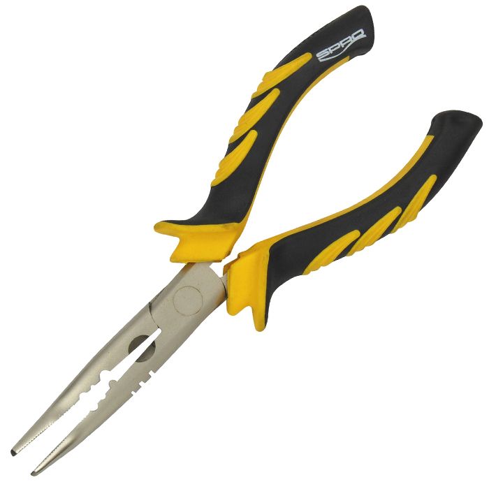Die Spro Spitzzangen sind das perfekte Werkzeug für jeden Angler. Diese Zange aus Edelstahl und korrosionsbeständigem Nickel ist robust und langlebig. Der bequeme TPR-Griff sorgt für rutschfesten Halt und das Trageband sorgt dafür, dass Sie sie im Wasser nicht verlieren. Mit einem multifunktionalen Design kann diese Zange in drei Größen schneiden, abisolieren und crimpen. Die Schneidklinge ist außerdem unglaublich scharf und wird jede Schnur oder jeden Haken schnell bearbeiten.