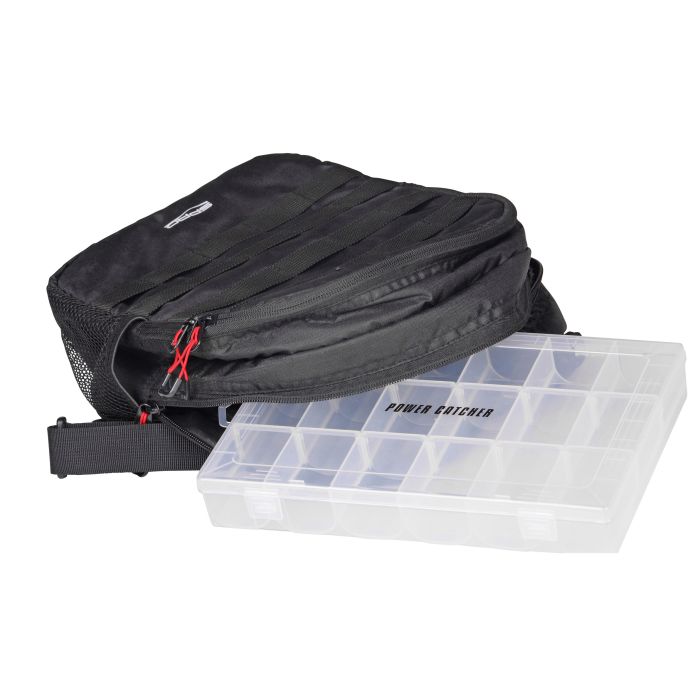 Diese Angeltasche ist für das Packen von leichtem Gepäck unerlässlich. Die Spro Powercatcher Shoulder Sling Angeltasche hat Gurtstreifen auf der Vorderseite, die Ihr Zubehör, einen Zangenhalter und D-Ringe aufnehmen können. Eine Seitentasche für Ihre Power Catcher Tackle Box (27,5 x 18 x 4,2 cm) ist ebenfalls vorhanden.