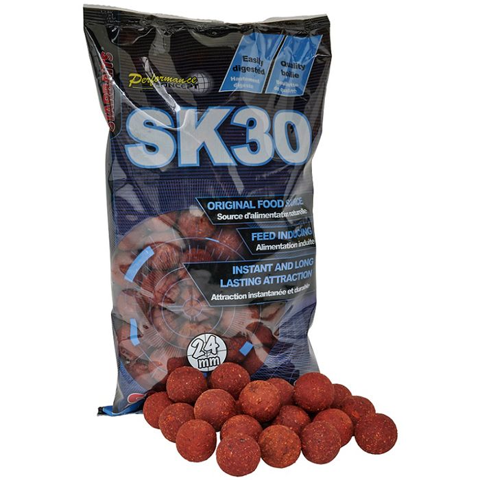 In der Rezeptur der SK30 Boilies finden sich viele tierische Mehle von sehr guter Qualität wie z.B. getrocknetes Fischmehl, lösliche Fischproteine, Extrakte aus Meerestieren und obendrein noch Squid und Krillmehl. Ein äußerst reizvoller Boilie, mit dem Sie die Großen Kaprfen auf einmal fangen können. Angereichert mit natürlichen Ölen und Zutaten aus der Lebensmittelindustrie, regt SK30 den Appetit der Karpfen an und ist sehr gut verdaulich. Auch bei dauerhafter Verfütterung verliert der SK30 nicht an Lockwirkung!