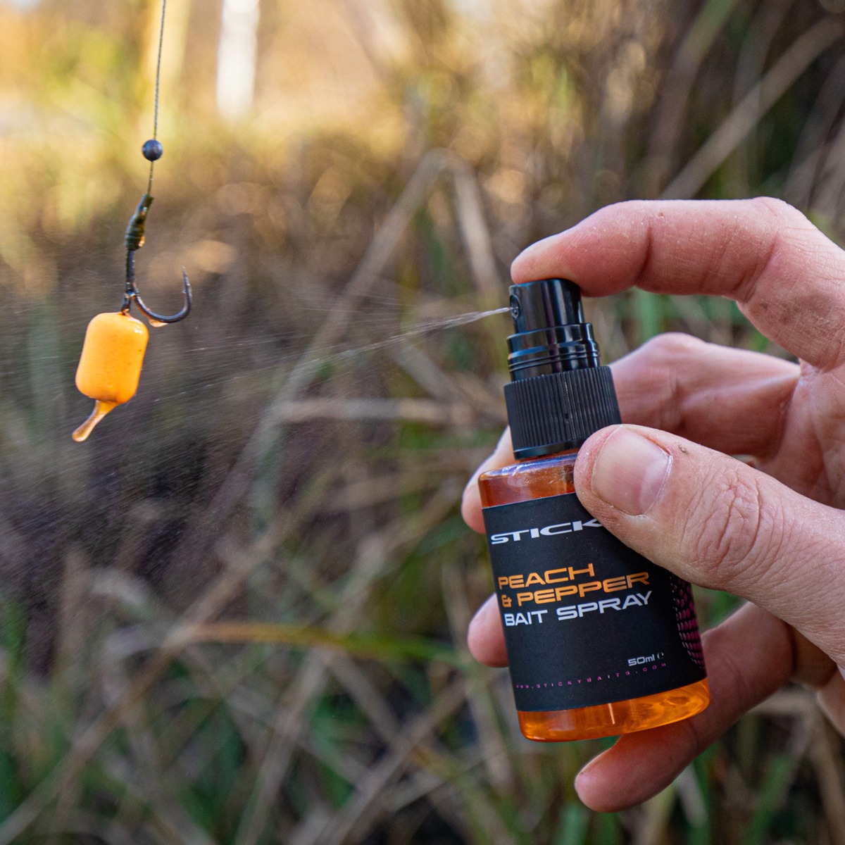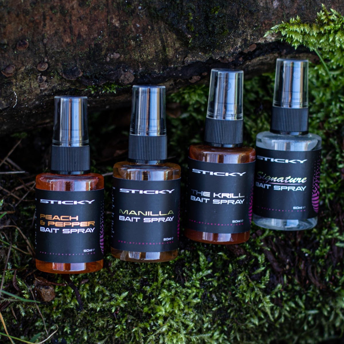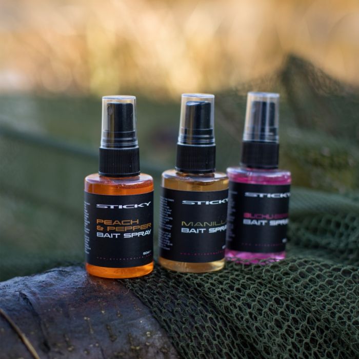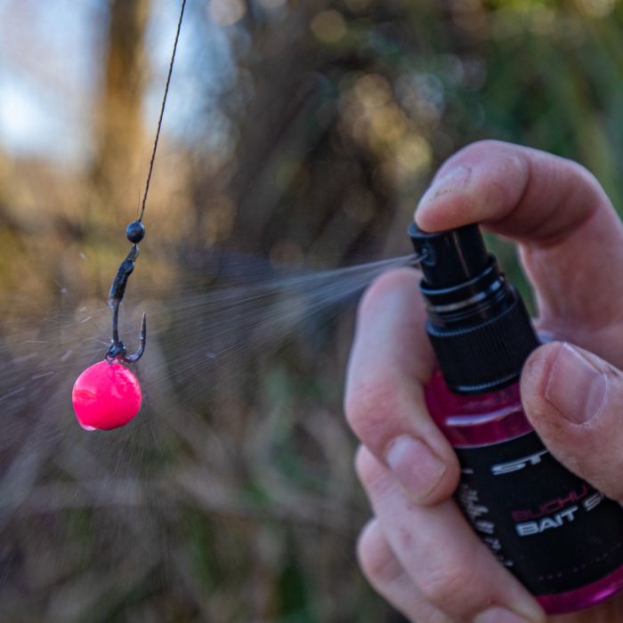Die Bait-Spray-Serie wurde als alternativer Attraktor entwickelt, um die Flüssigkeiten in jedem Bereich zu ergänzen, denn Liquid Food und Glug sind nicht ideal, um Hakenköder über längere Zeit zu tränken, da ihr Gewicht den Auftrieb eines Pop-Ups oder Wafters sehr beeinflussen kann.