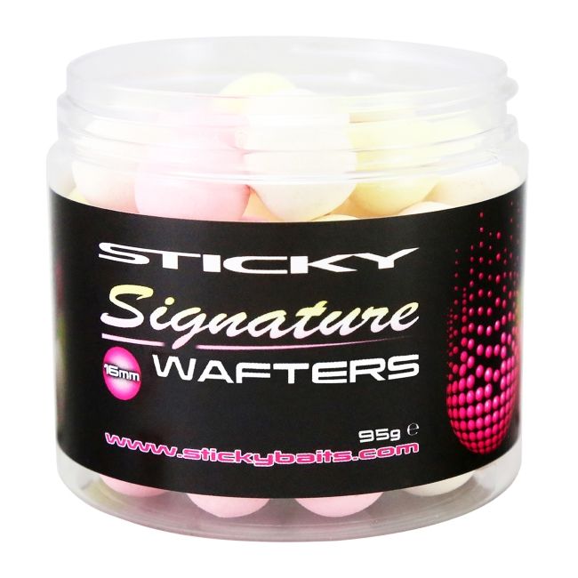Die Signatures erfreuen sich seit ihrer Veröffentlichung enormer Beliebtheit, weshalb Sticky Baits sie nun in runden Wafters herausgebracht hat. Wie die Pop-ups sind auch die Signature Wafters keine handelsüblichen Hakenköder und enthalten nicht weniger als zehn flüssige Zusätze sowie zwei Fruchtpulver, die so konzipiert sind, dass sie sowohl sofortiges als auch längeres Auslaufen maximieren, was bedeutet, dass Sie viel länger effektiver angeln können.