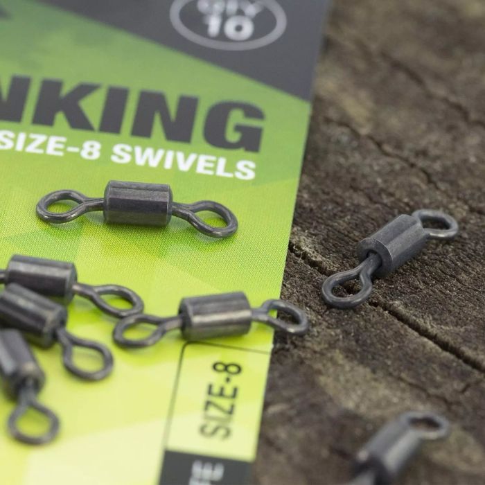 Wirbel der Größe 8, die für alle Aufgaben beim Karpfenangeln geeignet sind und zu den meisten Bleiklemmen, Klammern und Bleieinsätzen passen.