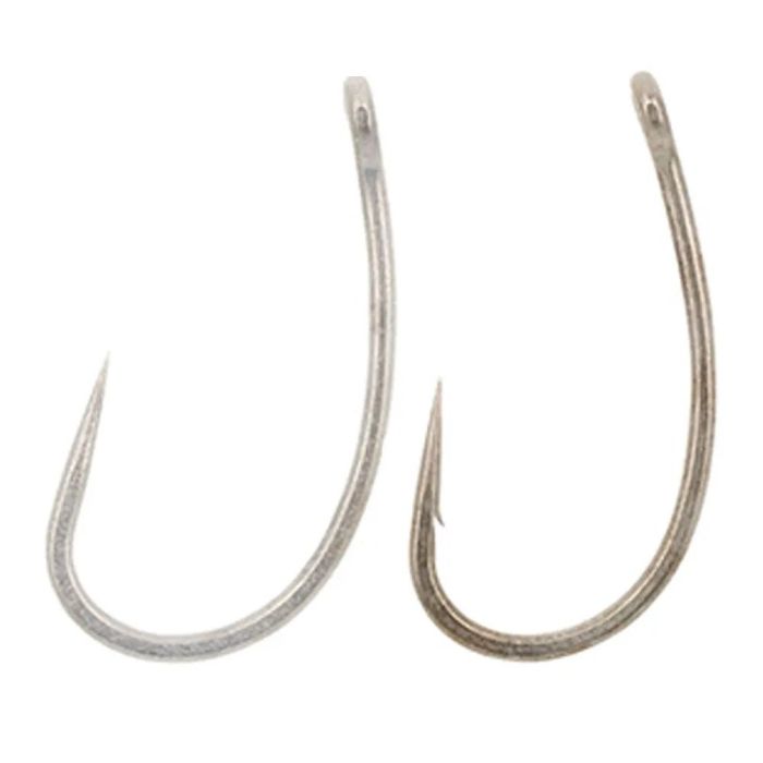 Trakker Curve Shank Fishing Hooks, The Trakker Curve Shank Fishing Hooks are the perfect choice for those looking for an easy, dependable fish-catching solution. Crafted from XC 80 Vanadium steel wire gauge and then chemically sharpened, these hooks have a straight point that ensures an efficient hook set. What's more, each individual hook is forged with an aggressive curved shank pattern and a straight eye to provide superior bait presentation among either live or artificial offerings. Lastly, they come with a PTFE protective coating which restricts glare ensuring your fishing line remains undetected in the water. With its long needle point and durable composition, the Trakker Curve Shank Fishing Hooks assure reliable performance for seasons to come - giving you peace of mind as you grapple with your next catch!