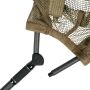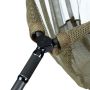 Das tiefe Netz wird aus verstärktem olivfarbenem Mesh gefertigt und mit einem großen Trakker-Symbol versehen. Das Netz bedeckt zwei versteifte, konisch zulaufende Karbonarme, welche mit einer äußerst robusten, langlebigen Schnur verbunden sind, die mit zwei speziell gefrästen Endkappen in Position gehalten wird.